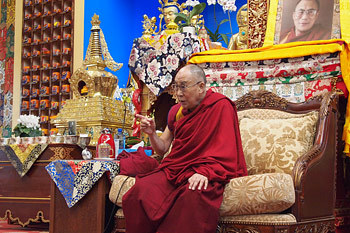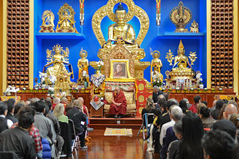 “Spiritual brothers and sisters,” His Holiness responded, “I’m very happy to be here again, although Geshe-la is no longer here. I’m happy to see that his students and followers are fulfilling his wishes. The great masters of the past like the Buddha himself and Nagarjuna are no longer with us, but their teachings have survived for more than 2000 years.