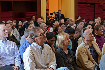 Members of the audience listening to His Holiness the Dalai Lama speaking at Deer Park in Oregon, WI, USA on March 6, 2016. Photo/Sherab Lhatsang