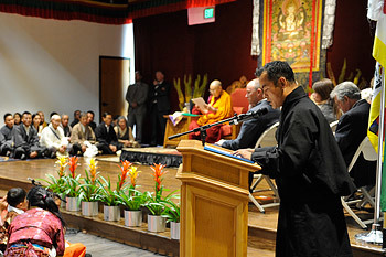 In his report, Lobsang Tsering dealt with the acquisition of the Community Hall and the difficulties the Association is having in making progress with Tibetan Language classes for children---although they are determined to continue to try. He concluded with prayers for His Holiness’s long life. Salt Lake County Mayor Ben McAdams spoke of the honour he felt in being invited to participate in the gathering in His Holiness’s presence. He announced that the community he represents has declared itself a compassionate community and plans to help the homeless, the elderly and others in need of support. He said: