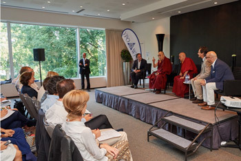 Paris, France, 12 September 2016 - On his last morning in Brussels, His Holiness the Dalai Lama met with members of the Young Presidents’ Organisation, a global network of young chief executives. They said they accepted that science has shown basic human nature to be compassionate, but wanted to know how to apply this finding in their businesses. His Holiness replied: