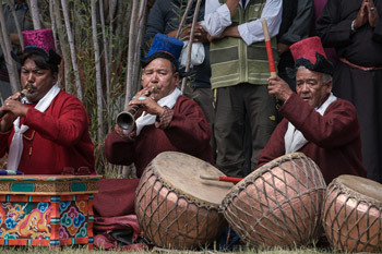 He was received at the Forest Park picnic spot by Dr. Sonam Dawa, Chief Executive Councillor. They crossed the River Indus on a steel bridge decorated with prayer flags. His Holiness saluted the traditional Ladakhi drummers and horn players who were there to welcome him and they reciprocated.