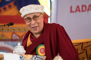 His Holiness the Dalai Lama speaking at a lunch in his honor at Forest Park in Leh, Ladakh, J&K, India on August 14, 2016. Photo/Tenzin Choejor/OHHDL