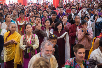 “I’ve been teaching almost continuously since arriving at Gyumey Tantric College three and a half weeks ago. Today, as a way of dedicating the merit we’ll conduct a White Tara Longevity Empowerment. I gather 700 students from local schools have joined us today, I wish you a Happy New Year. Young students like these are very important because they belong to the generation of the 21st century. I and my colleagues belong to the 20th century. Our time has passed and our lives are nearly over. The 21st century generation on the other hand are just at the beginning. They have a realistic opportunity to change the world.