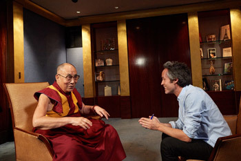Yann Barthes of TF1 interviewing His Holiness the Dalai Lama in Paris, France on September 14, 2016. Photo/Olivier Adam