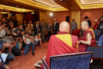 His Holiness the Dalai Lama meeting with members of the press in Paris, France on September 14, 2016. Photo/Olivier Adam