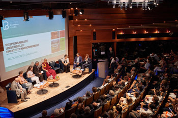 In the early afternoon, His Holiness drove to the Maison des Avocats where M Frédéric Sicard President of the Bar Council, welcomed him before an audience of 350. He presented His Holiness with a medal commemorating his three visits in 1982, 1985 and today and his contribution to a universal responsibility in relation to rights and the environment. In commending the Bar Council’s support for universal responsibility Mme Sofia Stril-Rever compared their work to that done during the French Revolution when lawyers played a prominent role.