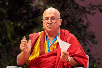 Ven Matthieu Ricard delivering his presentation at Mind & Life Dialogue in Brussels, Belgium on September 10, 2016. Photo/Olivier Adam