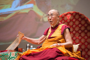 His Holiness the Dalai Lama speaking during the second day of teachings in Osaka, Japan on May 11, 2016.