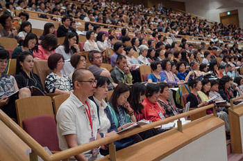 Members of the audience listening to His Holiness the Dalai Lama during the second day of teachings in Osaka, Japan on May 11, 2016. Photo/Tenzin Choejor/OHHDL