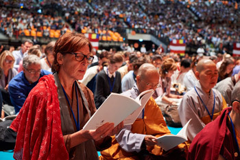The Heart Sutra was recited by the audience in French. His Holiness remarked: