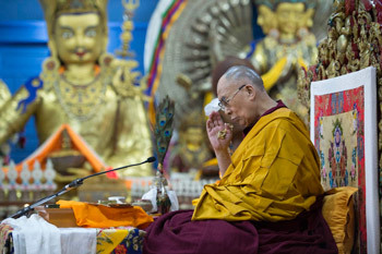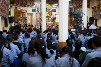 Thekchen Chöling, Dharamsala, HP, India, 3 June 2016 - Today saw the final session of a three day series of teachings His Holiness the Dalai Lama has been giving, directed primarily towards more than 3000 young Tibetan students.