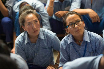 Some of more than 3000 Tibetan students listening to His Holiness the Dalai Lama at the Main Tibetan Temple in Dharamsala, HP, India on June 3, 2016.