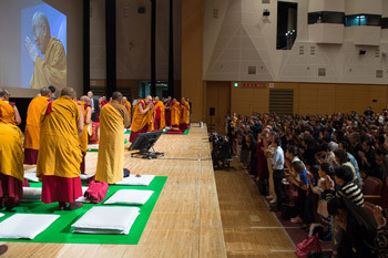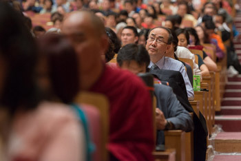Members of the audience listening to His Holiness the Dalai Lama during the third day of his four day teaching in Osaka, Japan on May 12, 2016. Photo/Tenzin Choejor/OHHDL