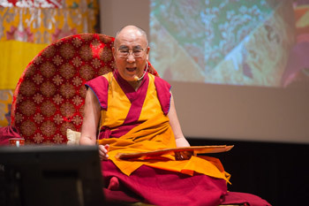 | His Holiness the Dalai Lama speaking during the