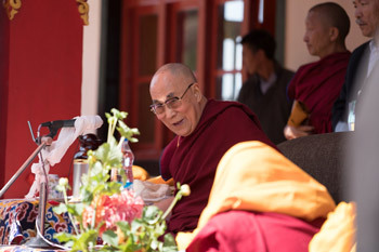 His Holiness the Dalai Lama speaking at Dakthog Monastery in Ladakh, J&K, India on August 5, 2016.
