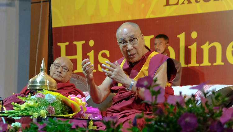 “In today’s world we face increasing natural disasters, including earthquakes, due to the effects of climate change. Yesterday in Guwahati I attended the Namimi Brahmaputra Festival celebrating the sacredness of that great river, but we know it also has a tendency to flood. Because of global warming the Himalayan glaciers are melting and less snow is falling. In Dharamsala, where I live, there is much less snow than when I arrived more than 50 years ago. In the meantime, the human population continues to increase and the gap between rich and poor continues to grow. We must find ways to raise the living standards of the poor. We must also find ways to make better use of scarce resources.