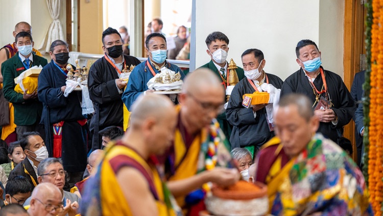 Next, in conjunction with a mandala offering Tatsak Rinpoché intoned an appreciation of His Holiness’s kindness along with a request that he live long.