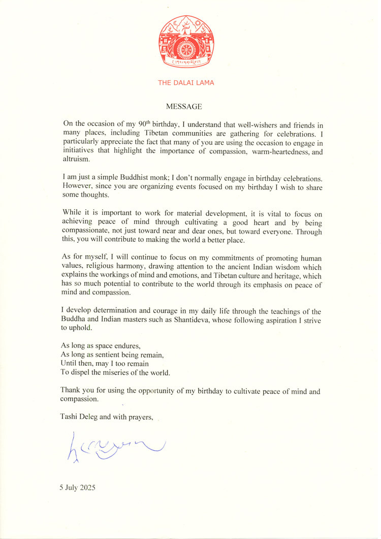 On the occasion of my 90th birthday, I understand that well-wishers and friends in many places, including Tibetan communities, are gathering for celebrations. I particularly appreciate the fact that many of you are using the occasion to engage in initiatives that highlight the importance of compassion, warm-heartedness, and altruism.
